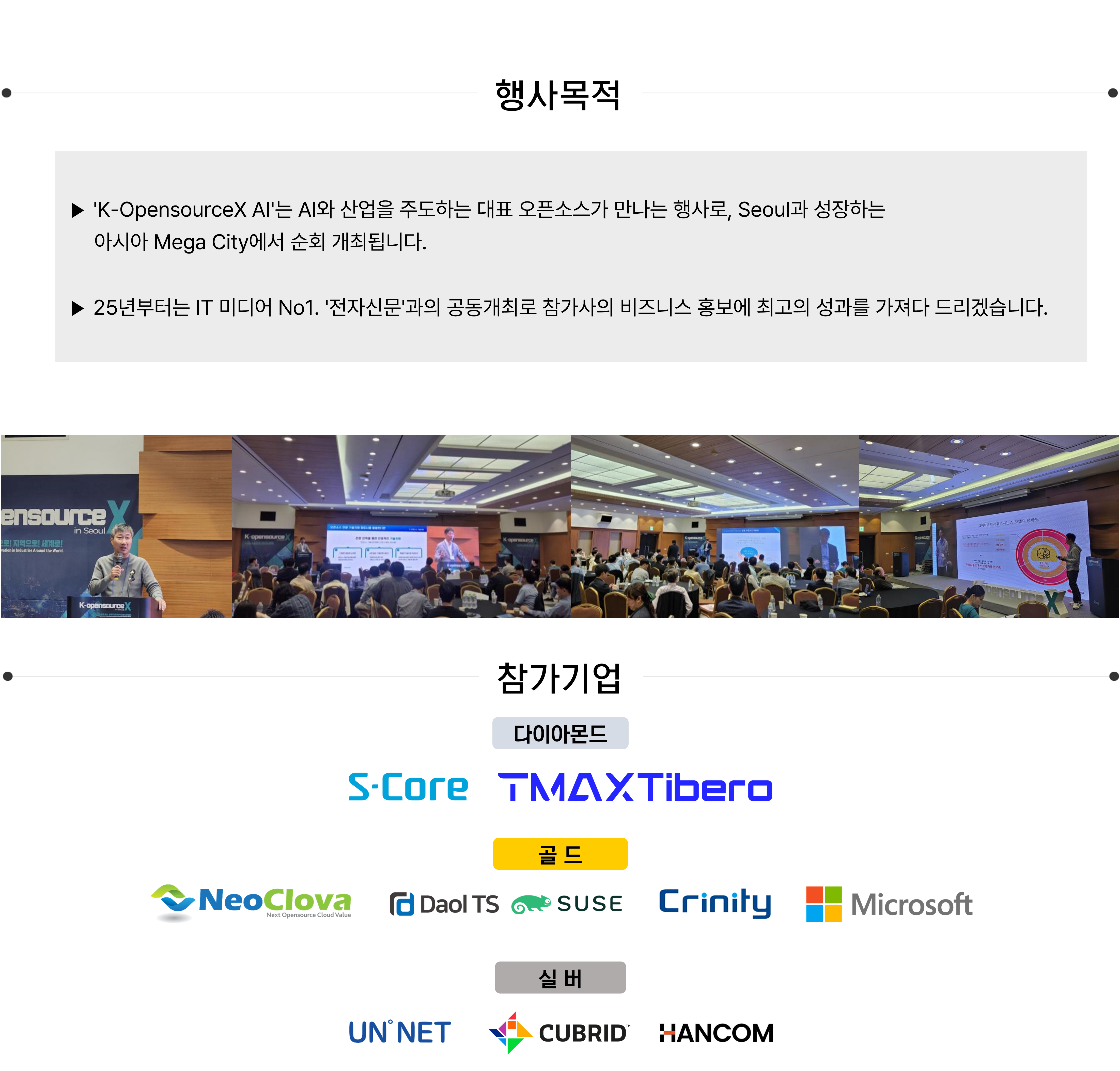| 오픈소스 AI시대!, AI, Data, Infra, SW 대표기업의 기술과 비즈니스 전략을 직접 만난다. | |